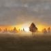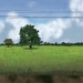 Thais landschap met bomen en wolken achter elektriciteitskabels.